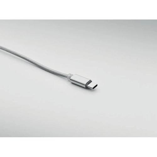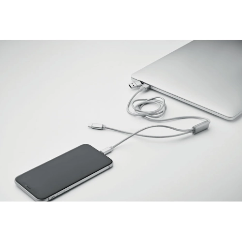Charging cable in aluminium with input: 2-in-1 type-C & type-A and micro-B (2 in 1 pin), Type C and micro B output. Cable length: 120cm.