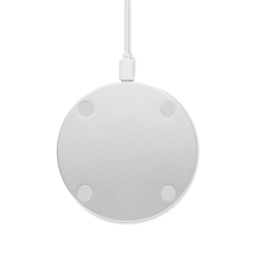 Wireless quick charger in bamboo and aluminium. Blue light lit when charging. Output: DC9V/1.1A (10W). Bamboo is a natural product, there may be slight variations in colour and size per item, which can affect the final decoration outcome.