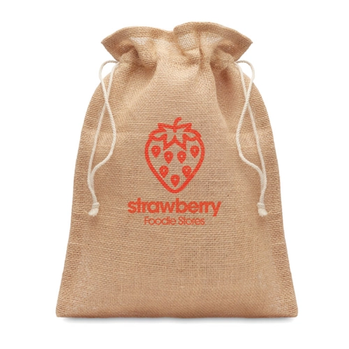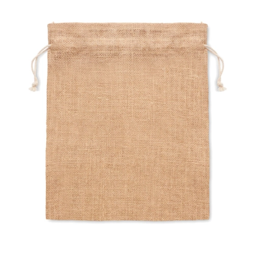 Small gift jute draw cord bag. Size approx. 14 x 22cm. This product is OEKO-TEX® STANDARD 100 certified.