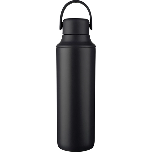 Double wall vacuum insulating bottle in recycled stainless steel (90% recycled stainless steel and 10% stainless steel) and silicone carry handle with detachable 3W wireless speaker. Capacity: 500 ml. 500 mAh battery. Remove speaker for cleaning. Leak-free.