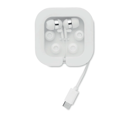 Silicone covered earphones that help to insulate against external noise for an improved sound quality. Phone-stand function. Presented in a plastic box where the 120 cm cable can be properly stored. 3 spare silicone covers in different sizes included. Connector: Type-C.
