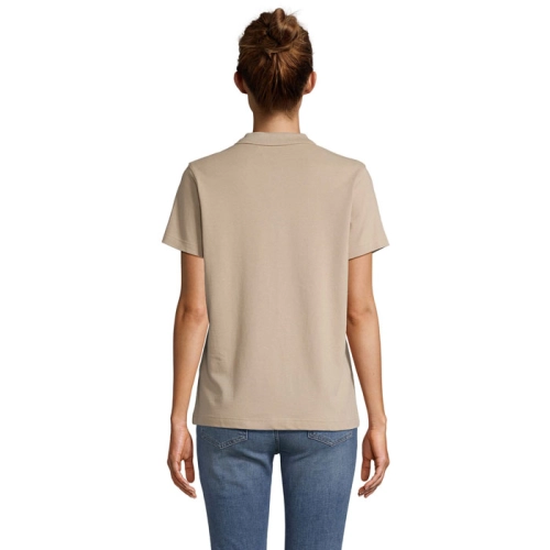SOL'S PULSE WOMEN POLO, women's polo shirt, 100% ring-spun combed cotton, new fit, ribbed collar, neck tape, reinforced button placket, short sleeves, tone-on-tone 3-button placket, straight hem, cut and sewn, spare button on inside side seam. For size information, please refer to the size chart in the product documentation.